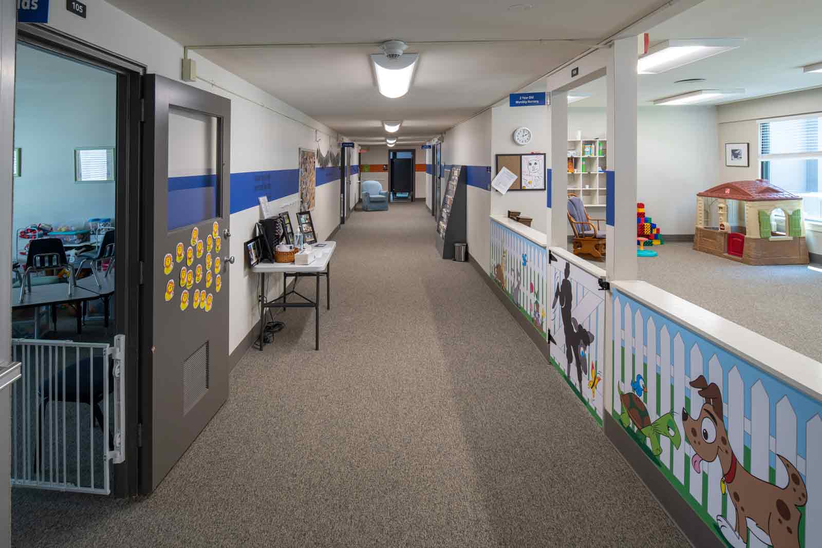 The first phase of the restoration project included repair and replacement of damaged air conditioning systems, lights, and wiring in the education wing. Upon investigation, we discovered the electrical wiring was outdated and in bad condition, primarily due to age and various renovation projects over the years. While completing electrical upgrades and repairs, Pro Service Builders worked with church leaders and insurance agents to minimize out-of-pocket expenses.